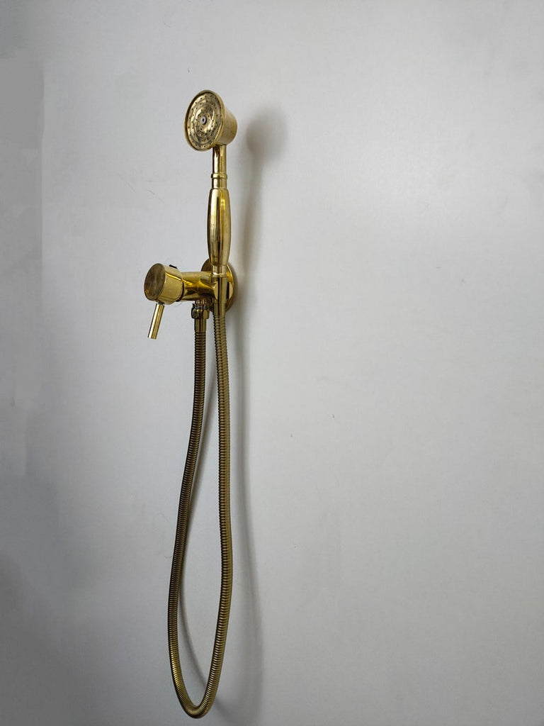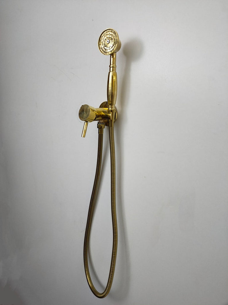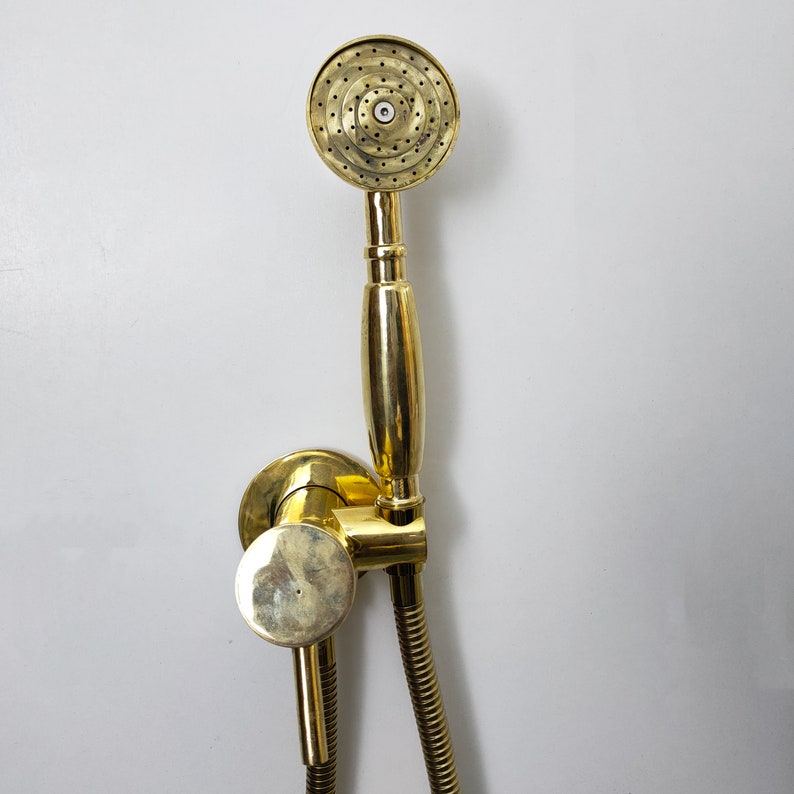 Unlacquered Brass Shower hand, Vintage HandHeld Shower With Mixer Valve