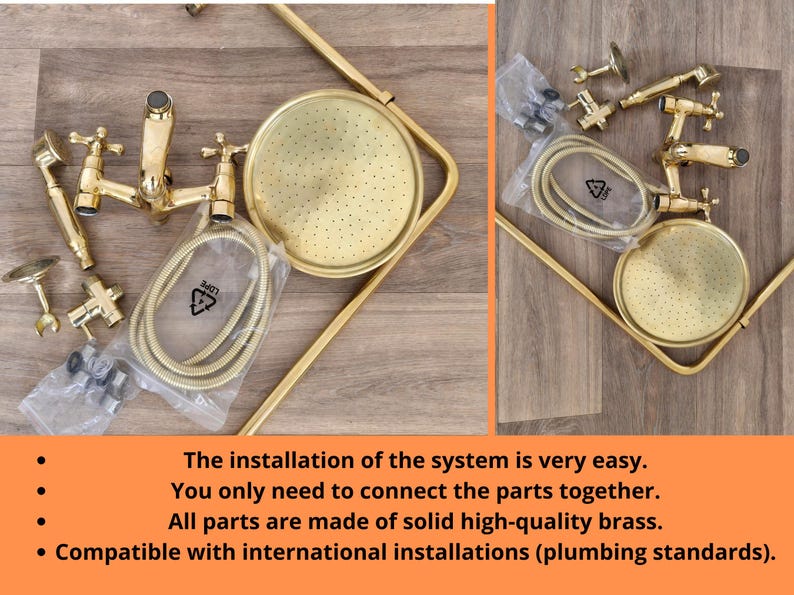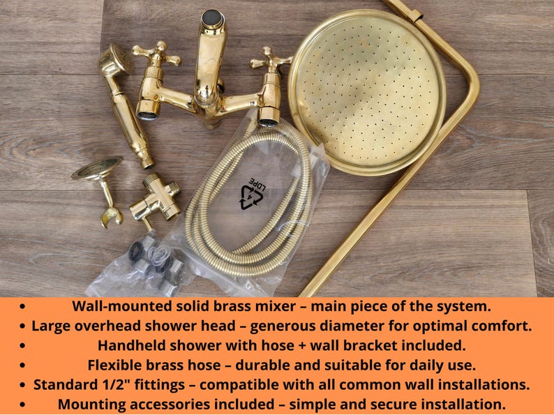 Transform your bathroom or outdoor space with our Unlacquered Brass Shower System – a timeless blend of durability, vintage charm, and modern functionality. Handcrafted from 100% solid brass, this shower fixture is designed to last for decades while naturally developing a rich patina that enhances its antique character.