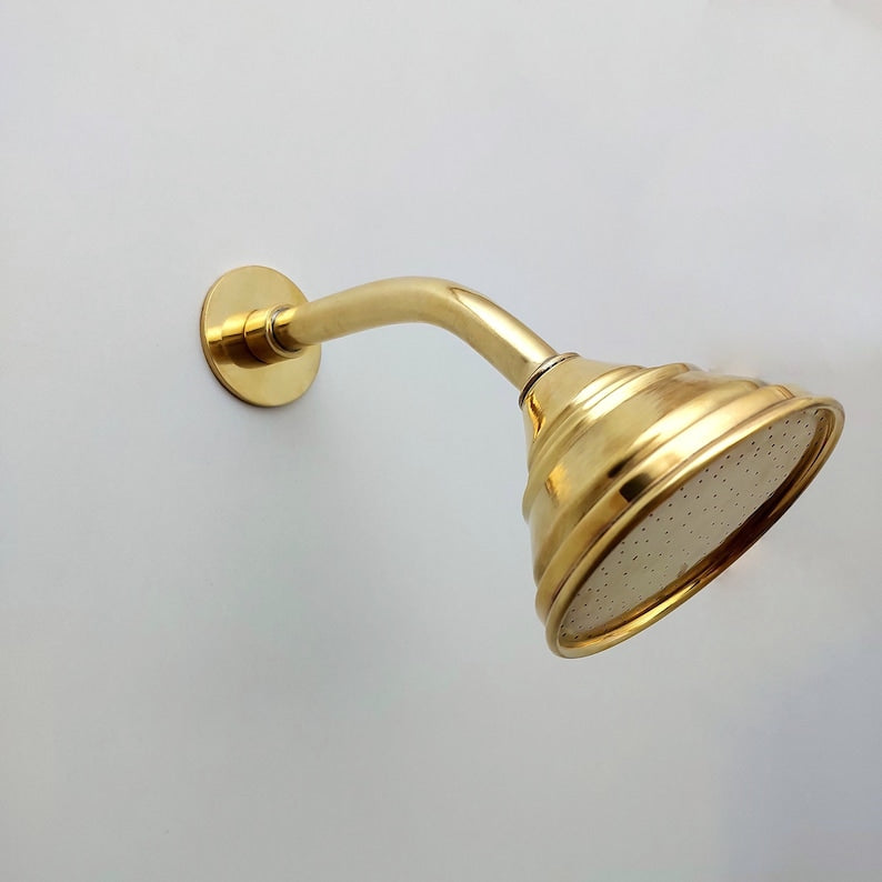 Unlacquered Brass Shower System with Round Shower Head