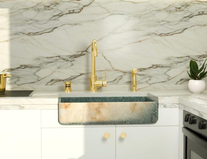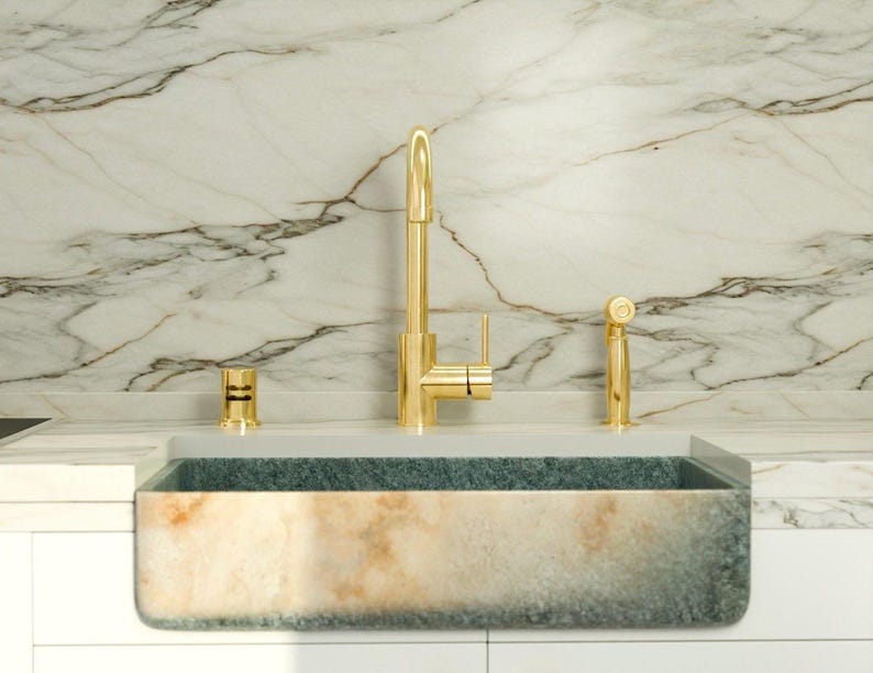 Enhance your kitchen with this premium faucet made of 100% solid unlacquered brass, a perfect blend of elegance and functionality. With its timeless design and naturally aging brass, it adds a warm, distinctive character to your kitchen for years to come.