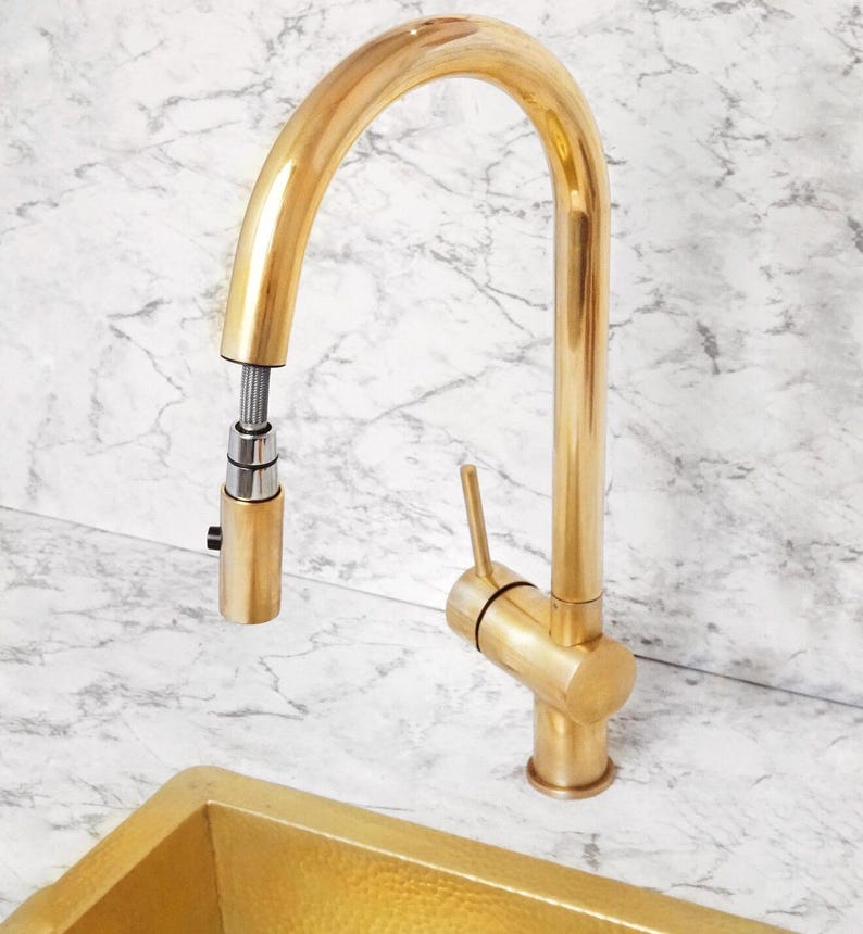 Unlacquered Brass Single-Handle Pull-Down Sprayer Kitchen Faucet, Solid Brass Sink Faucet