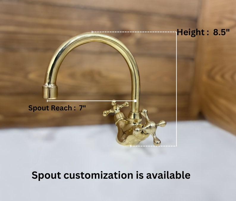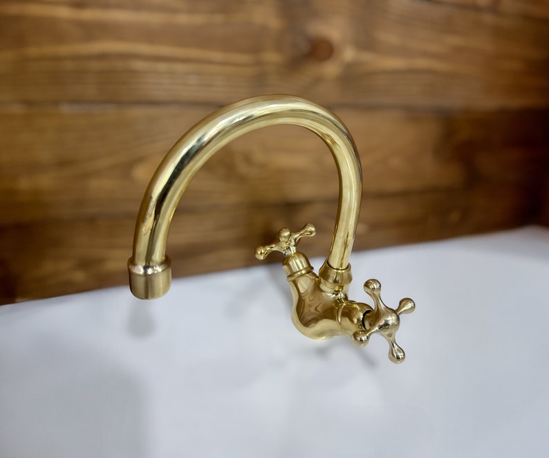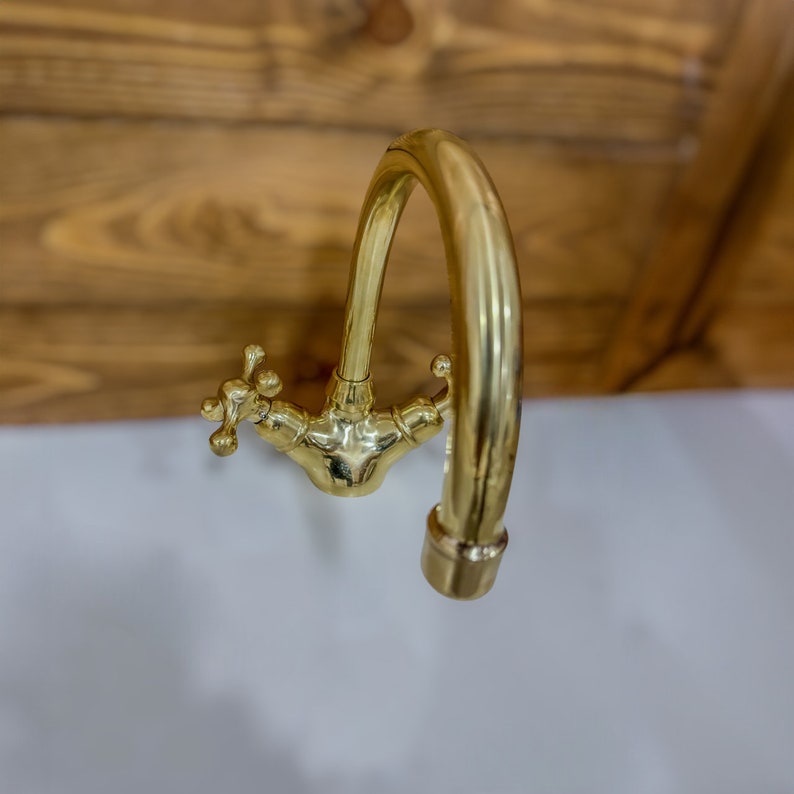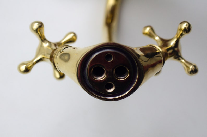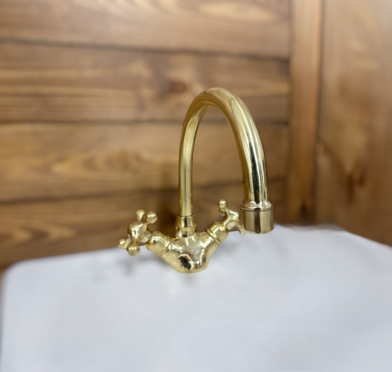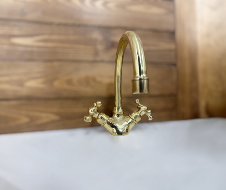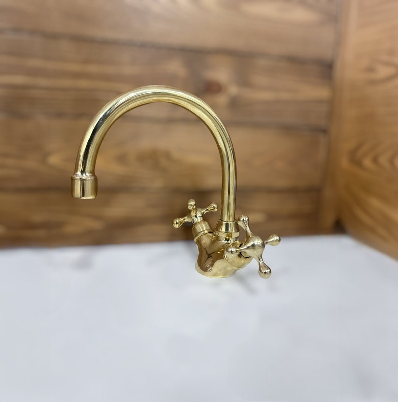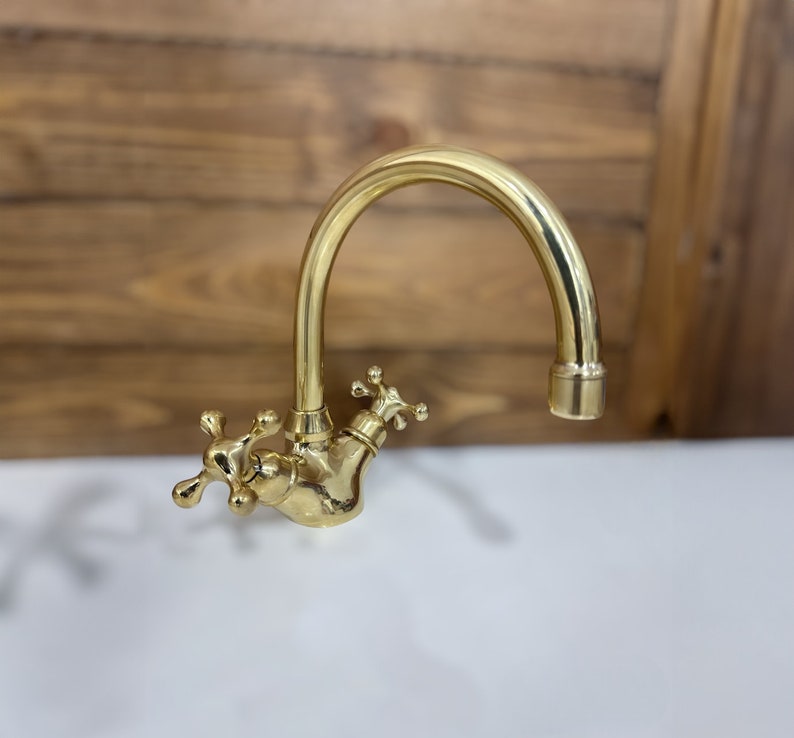 Unlacquered Brass Single Hole Bathroom vanity Faucet, Vintage Cross Handle Faucet, Sink Faucet, Brass Faucet, Vanity Faucet, Bath Faucet