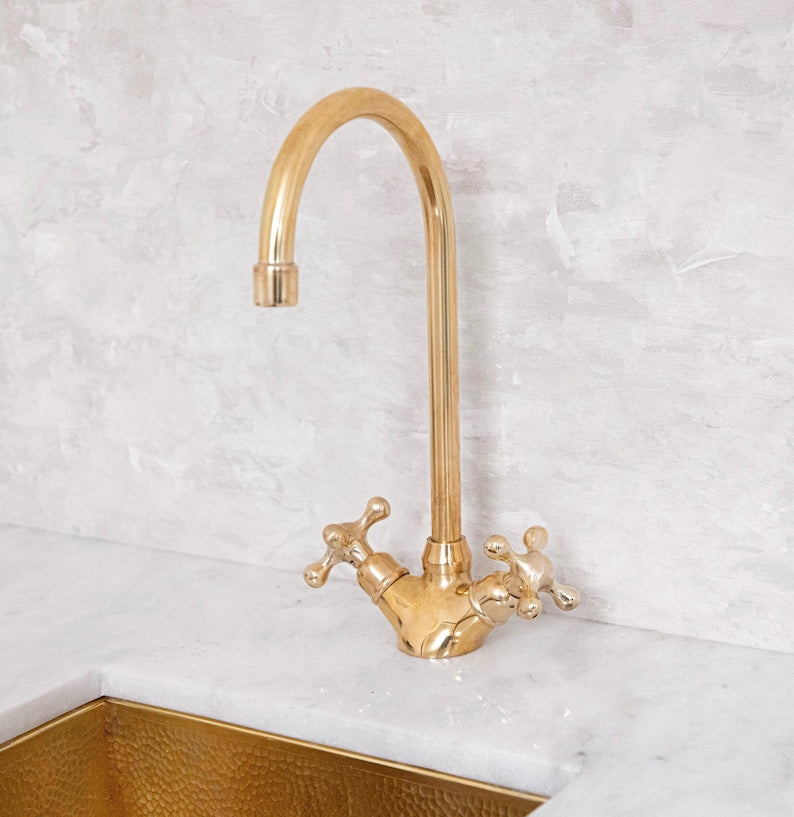 Solid Brass Single-Hole Kitchen Faucet, Unlacquered Finish & Deck Mount