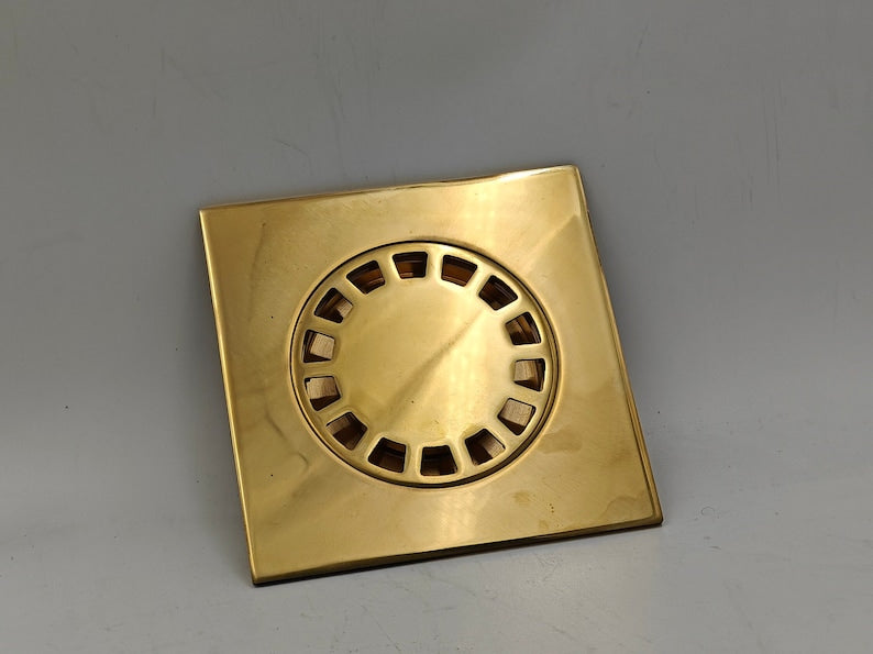 Unlacquered Brass Square Shower Floor Drain with Removable Cover