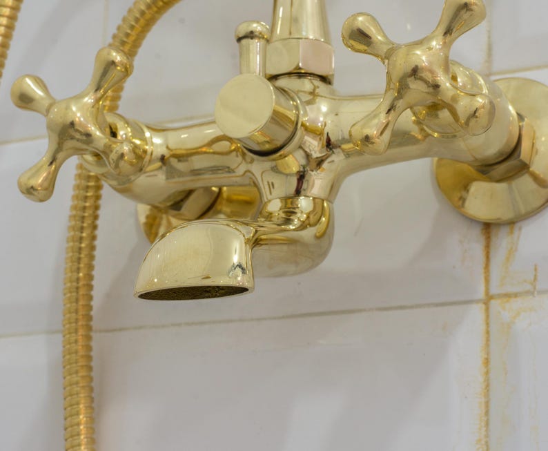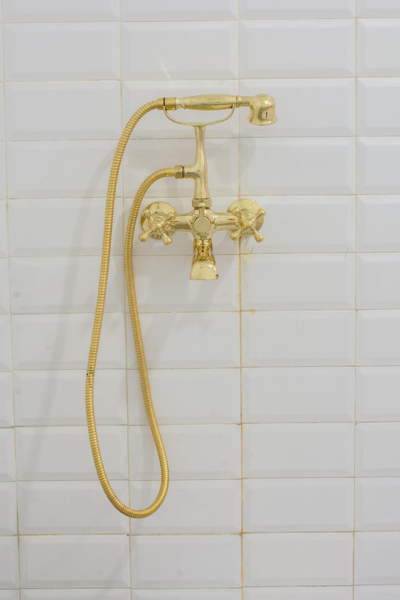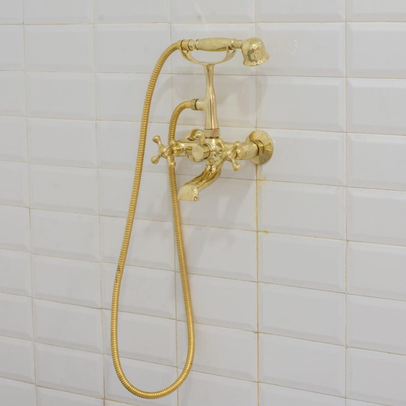 Unlacquered Brass Telephone Tub Filler Handheld Shower, Wall-Mount Bathtub Faucet With Hand Shower Set, Tub Faucet Mixer