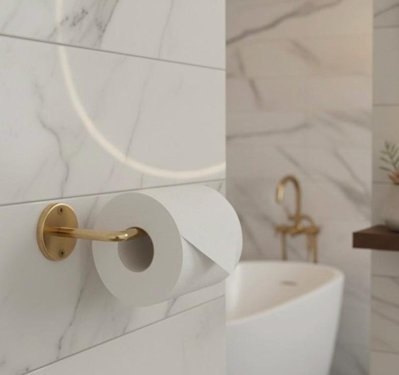 Unlacquered Brass Toilet paper Holder, Solid Brass Toilet Roll Holder for Bathroom, Powder Room Roll Holder ,Wall Mounted Towel Holder