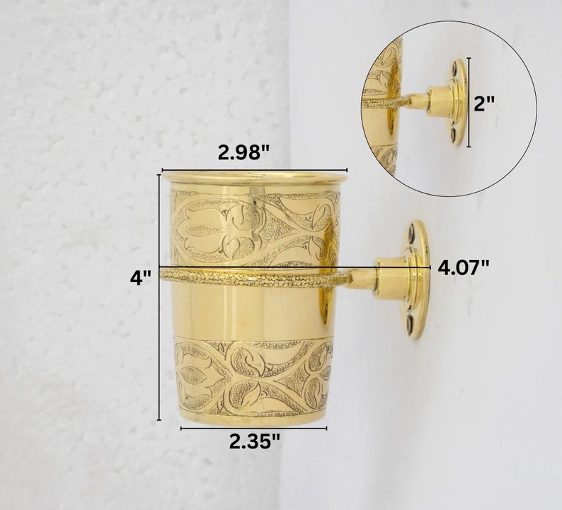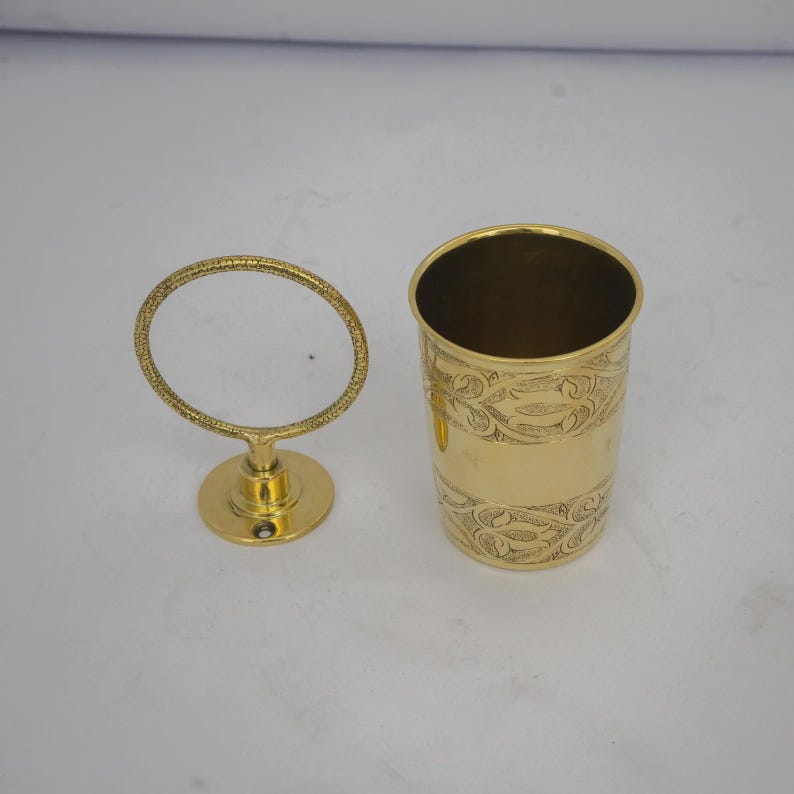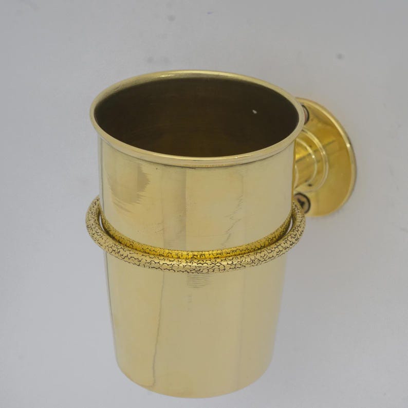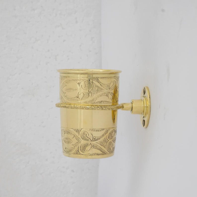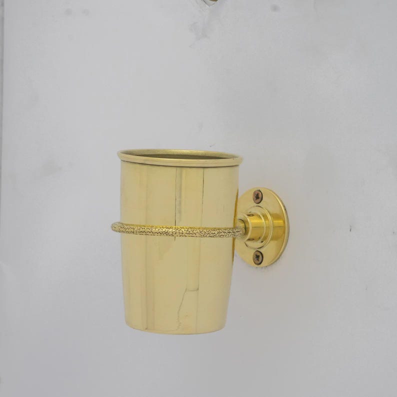 Unlacquered Brass Toothbrush Cup Holder, Wall Mount Toothbrush Organizer