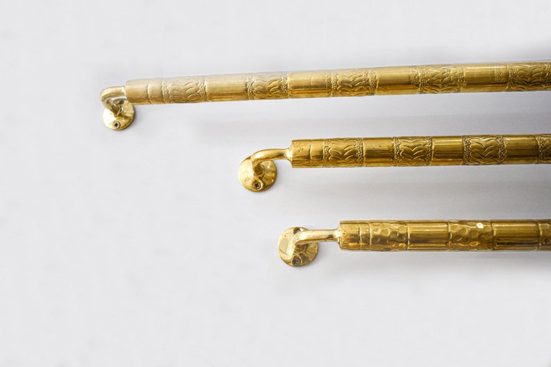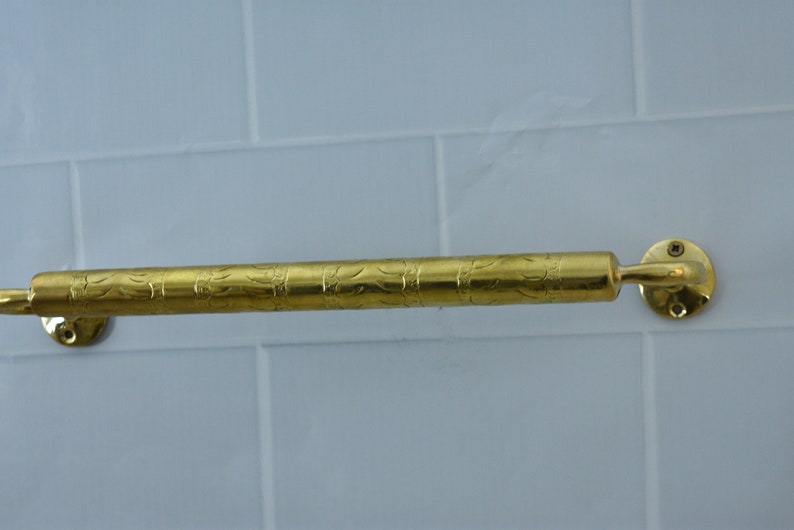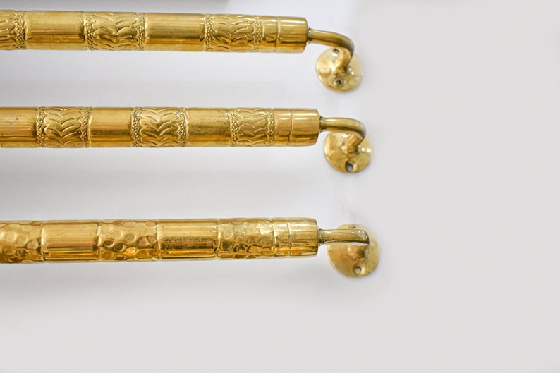 This towel holder is 100% handmade of solid Unlacquered brass, it gets warm patina overtime. It will add an elegant, charming and antique decoration to your space.