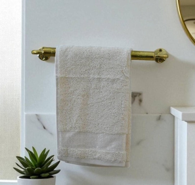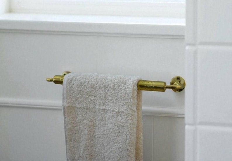 Unlacquered Brass Towel Bar | Handmade Moroccan Bathroom Hardware | Rustic Towel Rod Holder