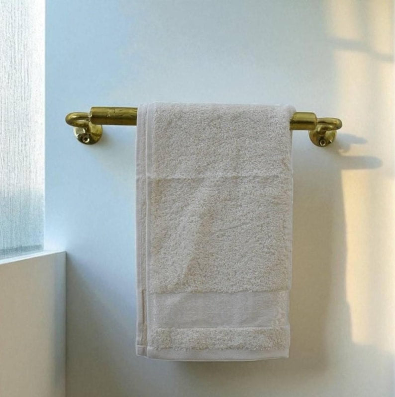 Transform your bathroom into a Moroccan oasis with this handmade unlacquered brass towel bar that combines authentic artistry with premium functionality.