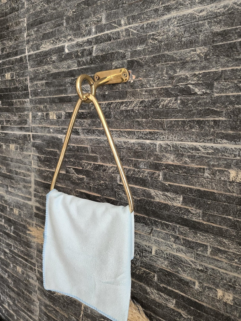 This elegant brass towel ring is designed to bring a luxurious and timeless feel to your space. Its unlacquered finish naturally develops a rich patina over time, adding to its vintage charm. The geometric design makes it a unique alternative to standard towel rings, blending beautifully with modern, Moroccan, and bohemian interiors.