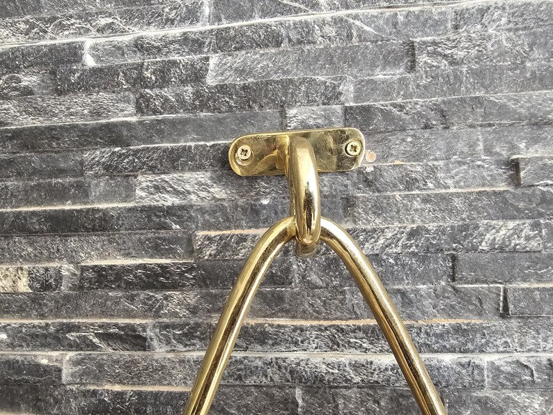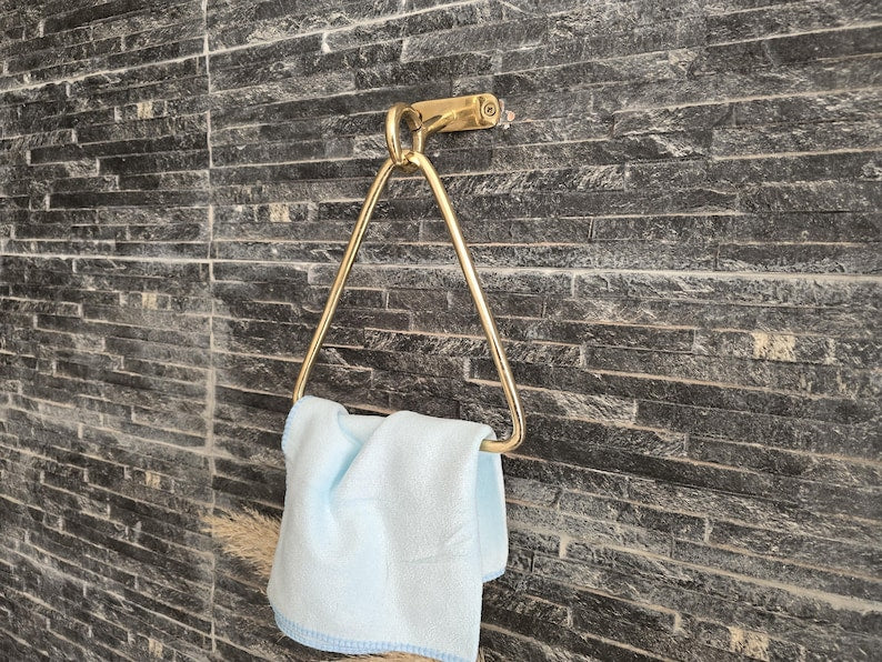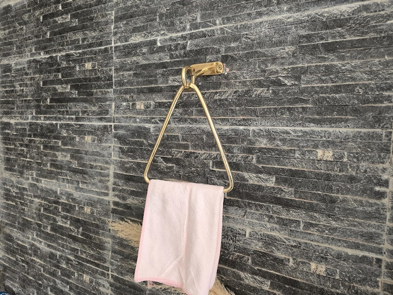 Unlacquered Brass Towel Holder - Wall Mounted Gold Bathroom Hardware - Handmade Moroccan Decor - Modern Brass Triangle Towel Ring