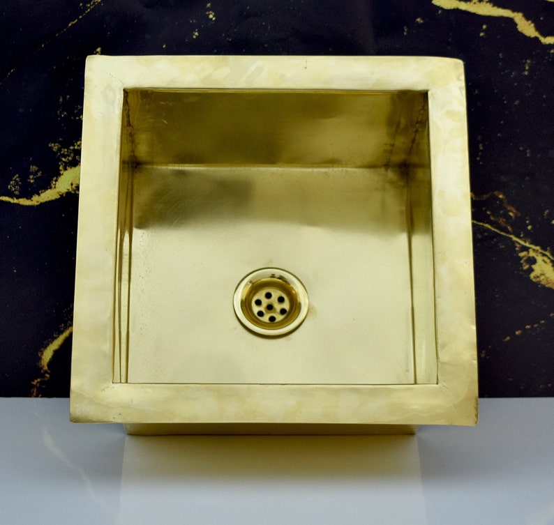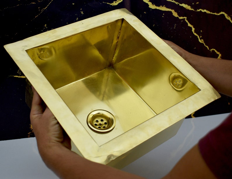 The sink is handcrafted of a thick plaque of unlacquered solid brass. Not the average thin brass. Made for heavy-duty tasks and to be reliable for a lifetime.