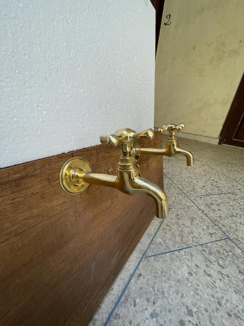 Brass wall-mounted faucets are designed to have a simple look and antique style. They are easy to install and come with all the necessary accessories suitable for both cold and hot water.