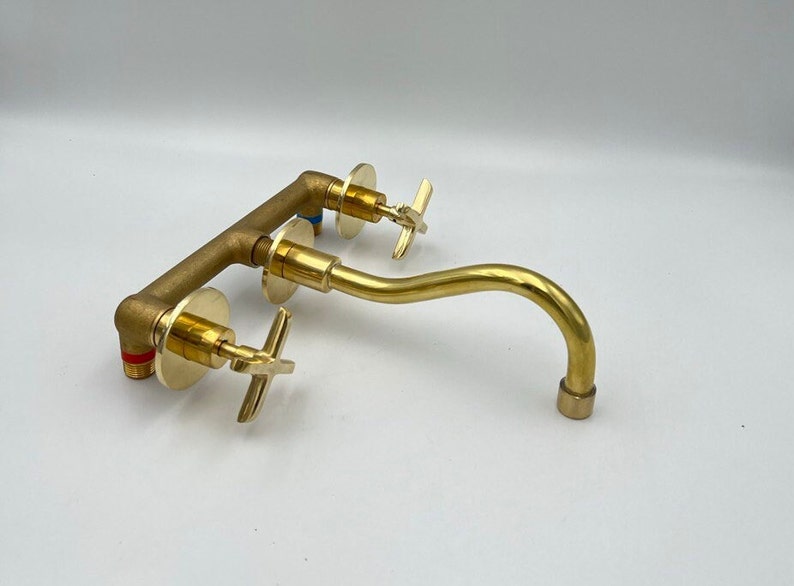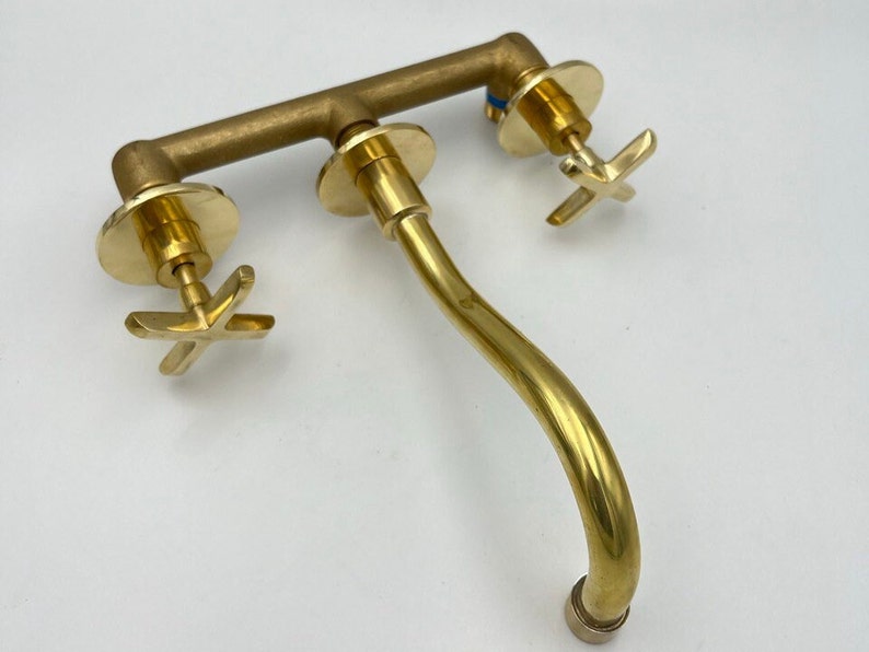 Elevate your bathroom's elegance with the "Unlacquered Solid Brass Wall Mounted Bathroom Vessel Sink Faucet." Its antique design exudes a timeless charm, perfectly complementing any classic vanity setup. Crafted from durable, unlacquered brass, this faucet promises longevity and a unique patina over time. Experience luxury and functionality combined, making every use a sophisticated affair.
