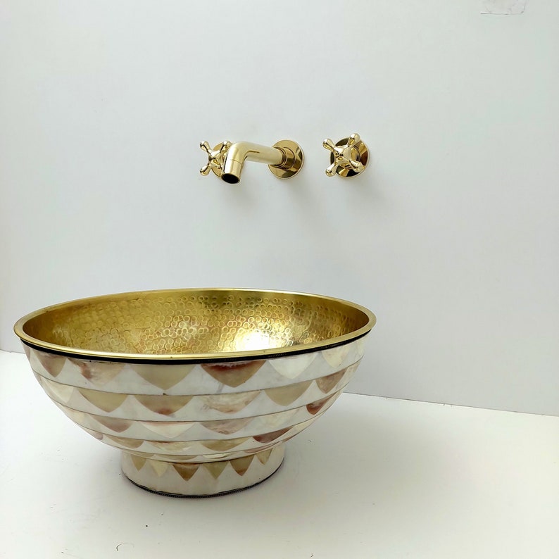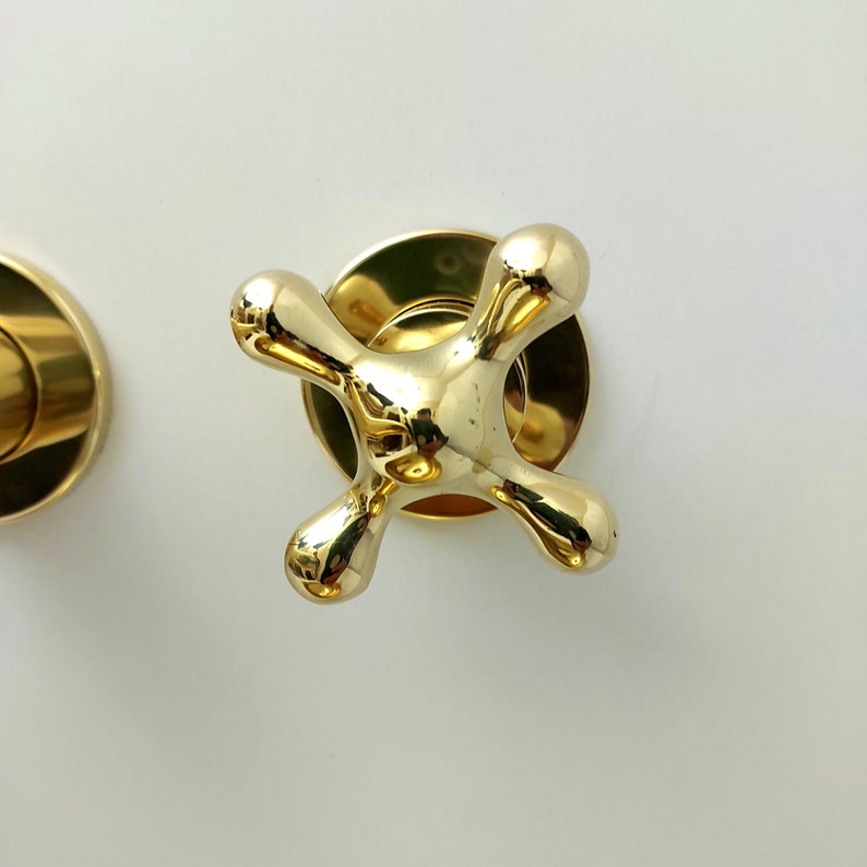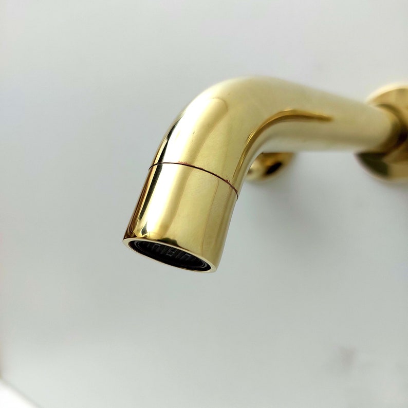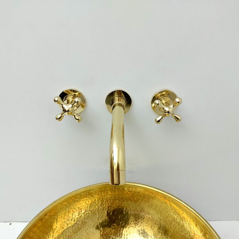 Upgrade your bathroom with this Unlacquered Brass Wall Mounted Faucet by Atlasty! With over 30 years of experience in the brass manufacturing industry, we bring you a high-quality, durable faucet perfect for any home. This faucet features cross handles, giving you the option to choose the handle that best suits your home decor. The unlacquered brass finish adds a touch of elegance and vintage charm to your sink. Easy to install and built to last, this faucet will be a perfect addition to your home