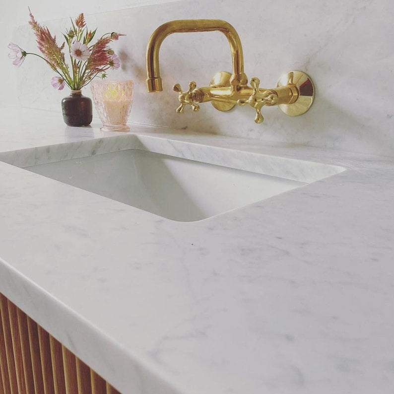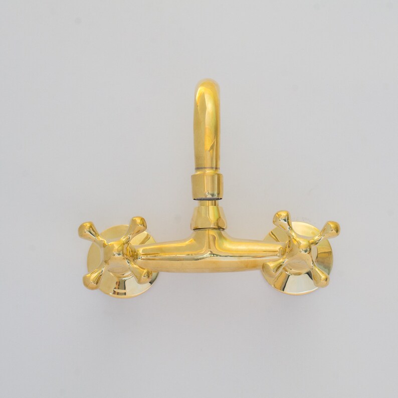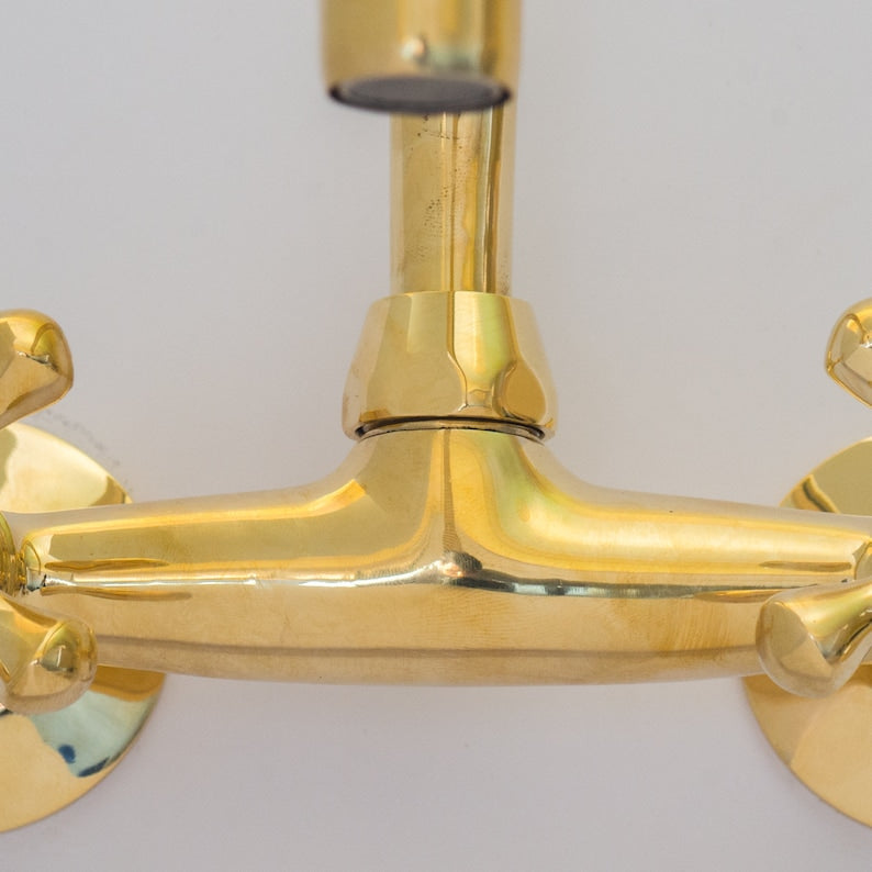Unlacquered Brass Wall Mount Bathroom Faucet, Vanity Faucet Brass, Bridge Bathroom Faucet