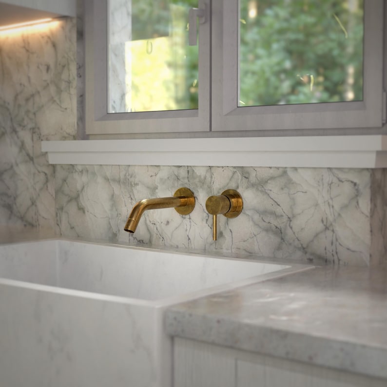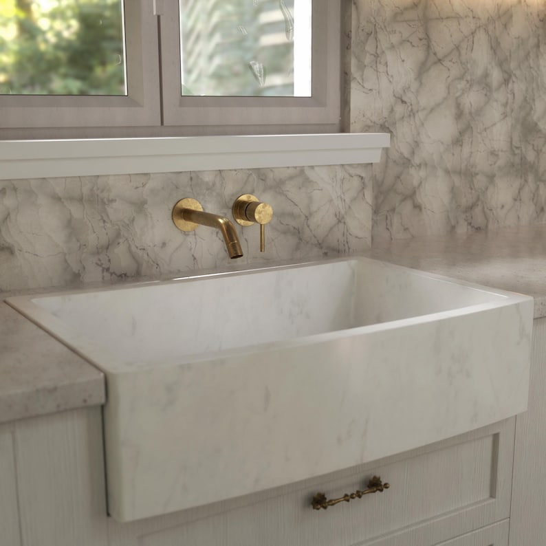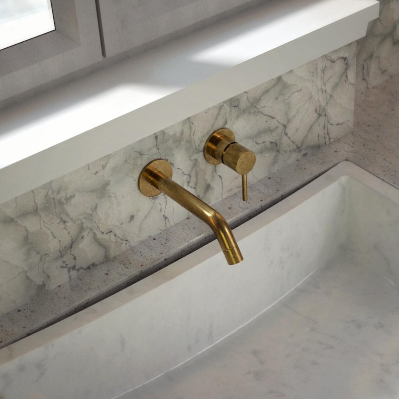 Over time, the unlacquered brass will naturally develop a rich, warm patina, adding charm and depth to your space. Its wall-mounted setup not only saves valuable countertop space but also delivers a sleek, refined look — perfect for both sinks and bathtubs.
