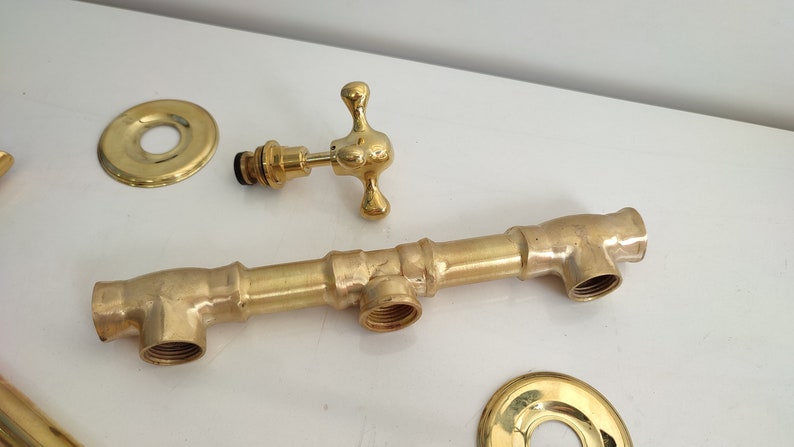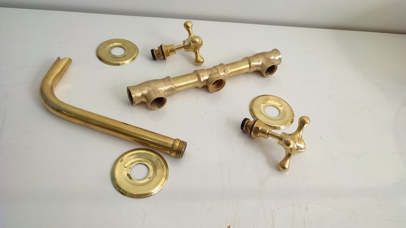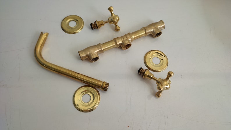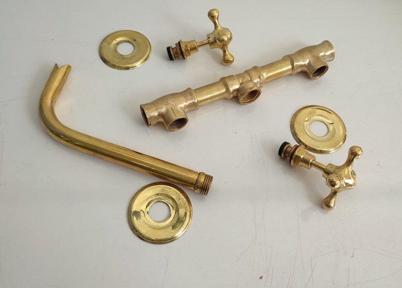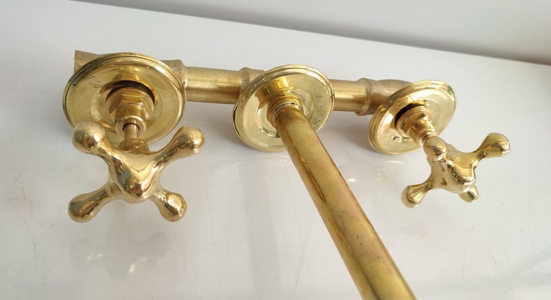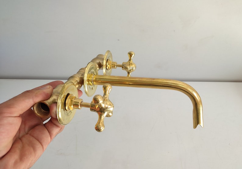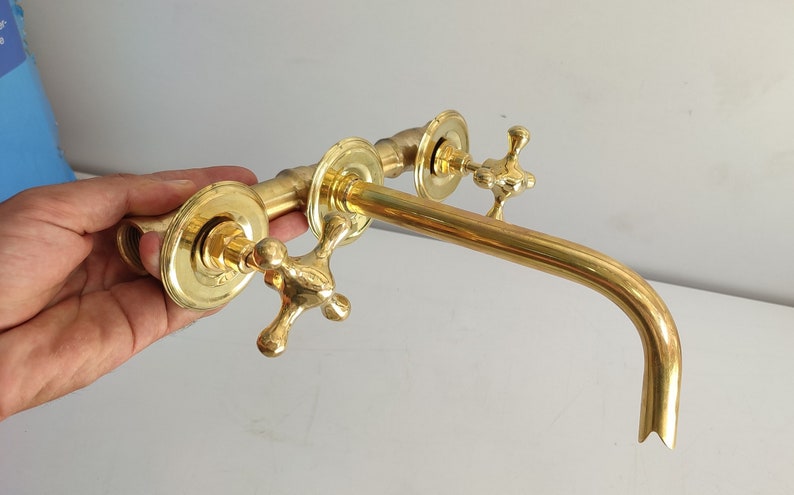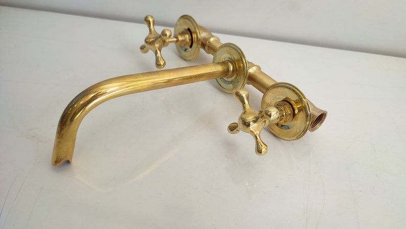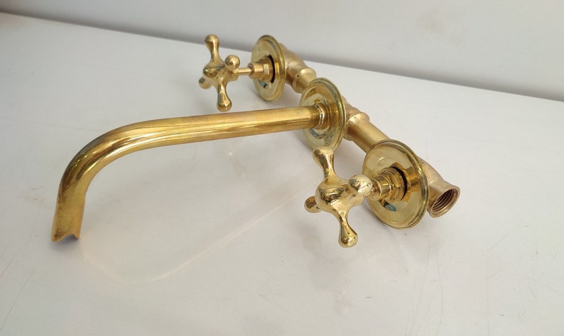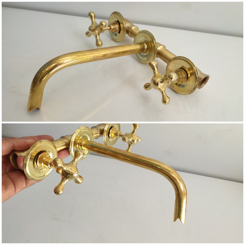 Unlacquered Brass Wall Mounted Bathroom Sink Faucet