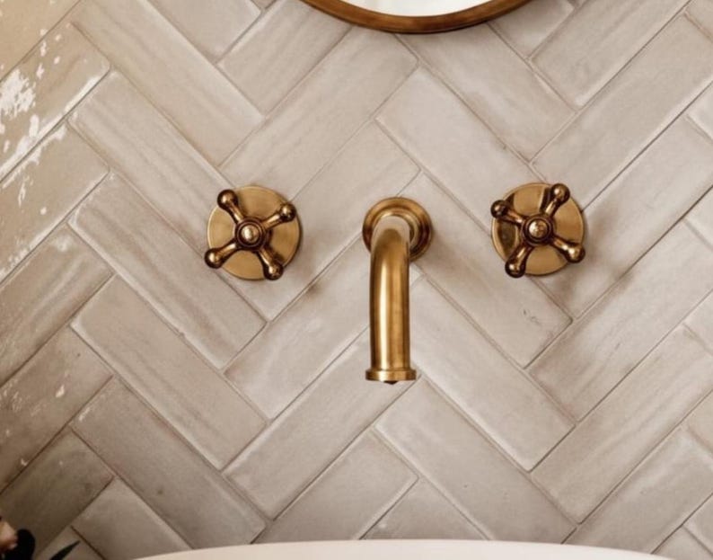 Unlacquered Brass Wall Mounted faucet, Antique Brass Wall Mount Faucet, Bathroom Faucets | Rough in Valve Included