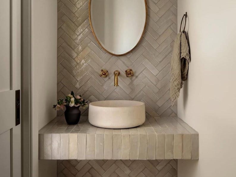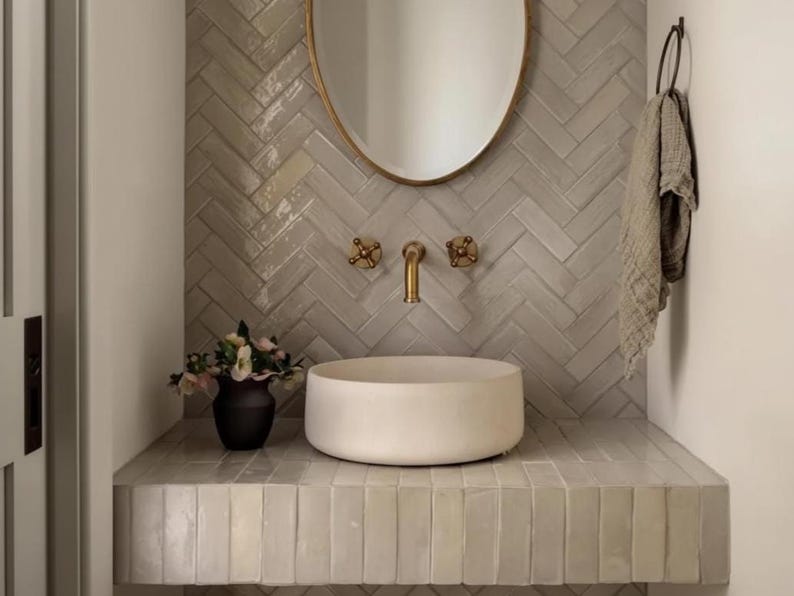 Unlacquered Brass Wall Mounted Faucet, Made of natural solid brass. Bathroom faucet wall mount with rough in valve.