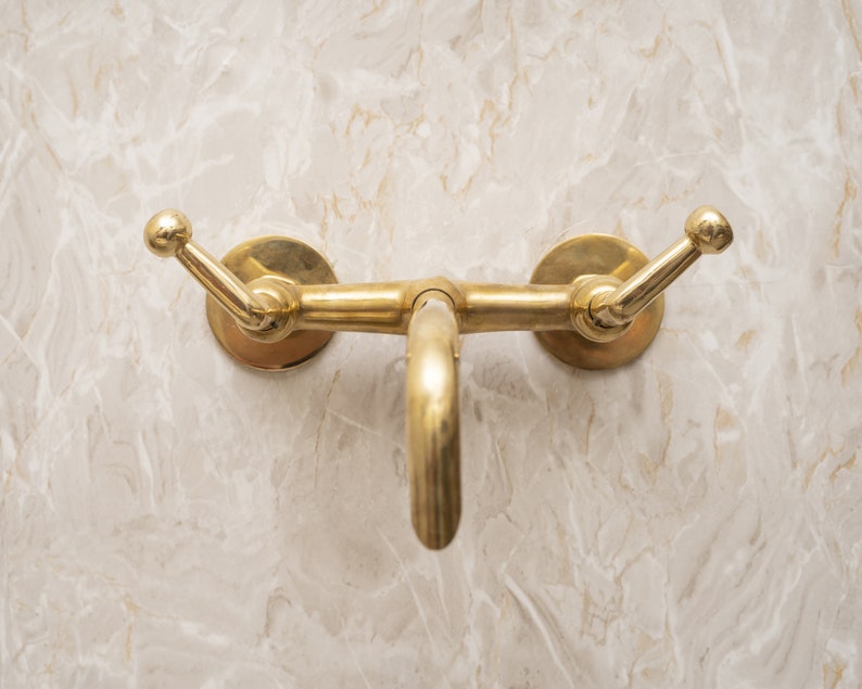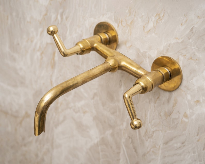 The Handcrafted Unlacquered Brass Wall Mounted Bathroom Faucet also called Tub Filler who comes with Two lever handles is a must-have for any Etsy shopper seeking a high-quality, visually stunning, and functional bathroom fixture. With its meticulous craftsmanship, durable construction, and timeless aesthetic, this vanity faucet set is sure to elevate the overall look and feel of your bathroom design.