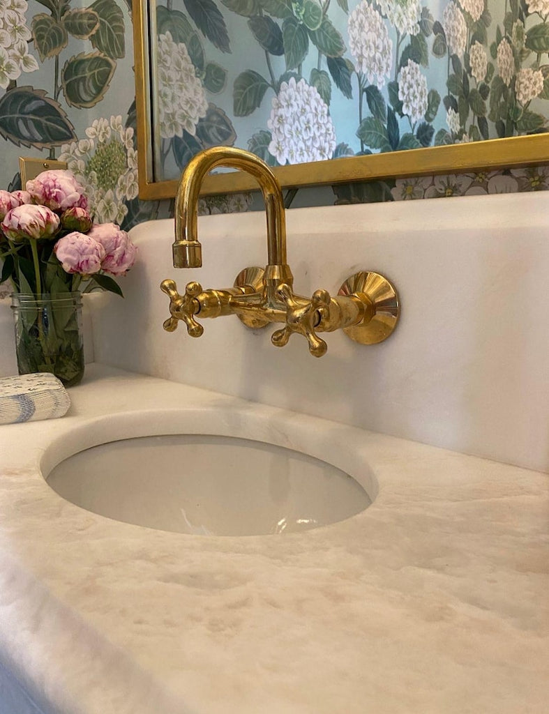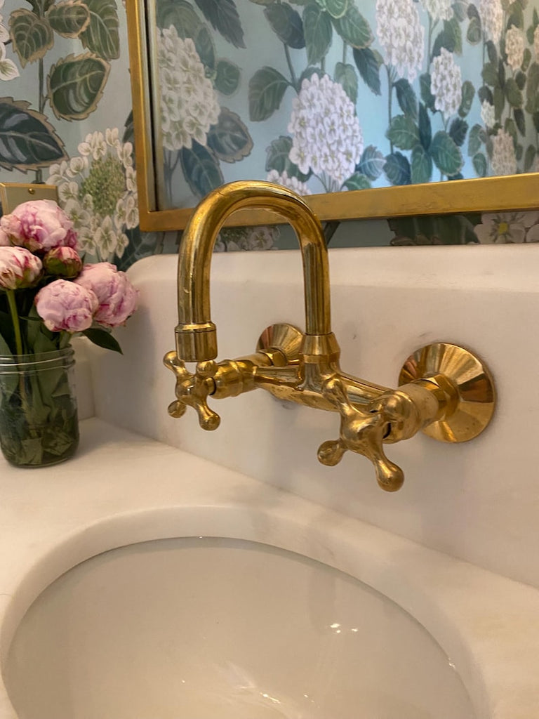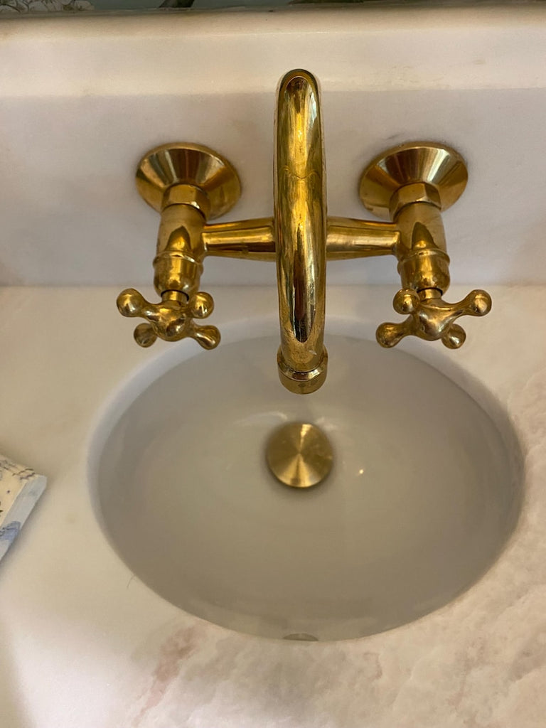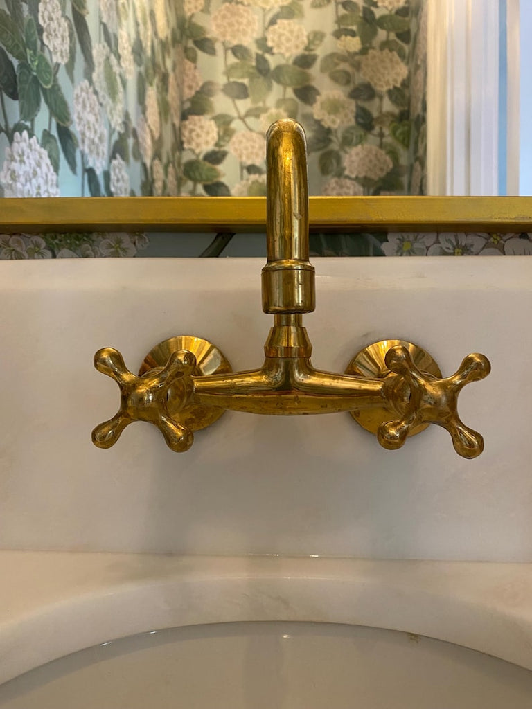This wall mount faucet is made from solid brass and is built to last. It’s perfect for vessel or drop in sinks in your bathroom or kitchen. The unlacquered brass finish will change color over time, giving it a beautiful, natural look.