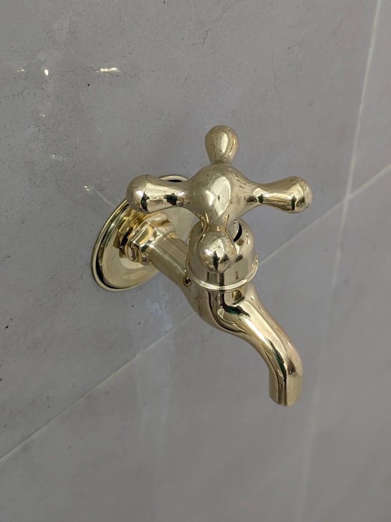 Unlacquered Brass Wall-Mounted Faucets: Vintage Bib Taps, Indoor Outdoor Use.