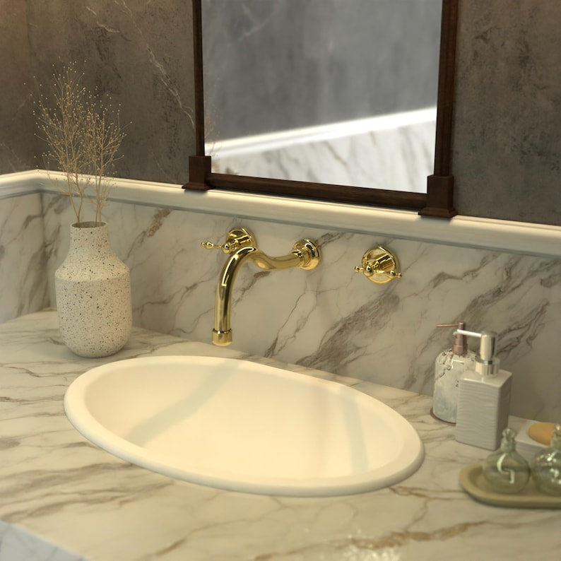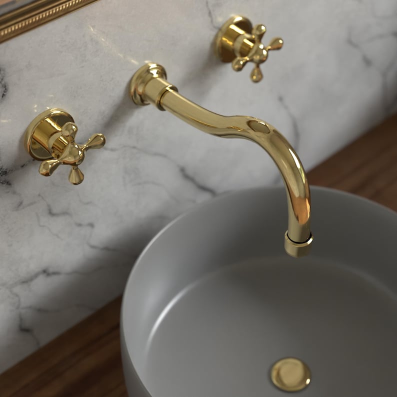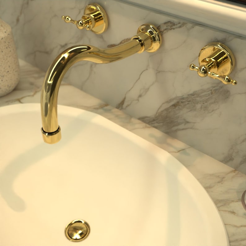 Unlacquered Brass Wall-Mounted Vanity Faucet, Double Handle