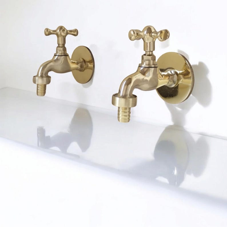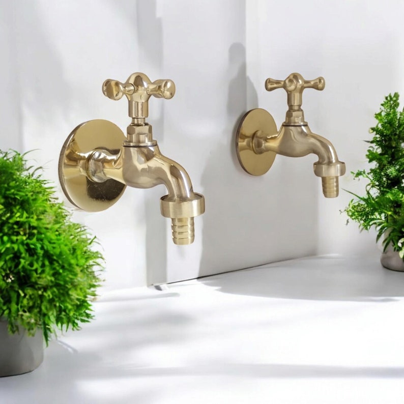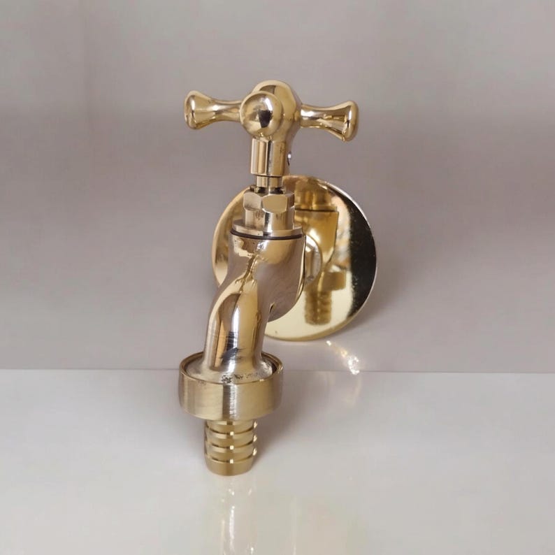 Introducing our Unlacquered Brass Water Spigot – a compact yet striking addition to your outdoor space. This small wall water tap seamlessly combines antique vintage charm with modern functionality, making it the perfect choice for both traditional and contemporary settings.