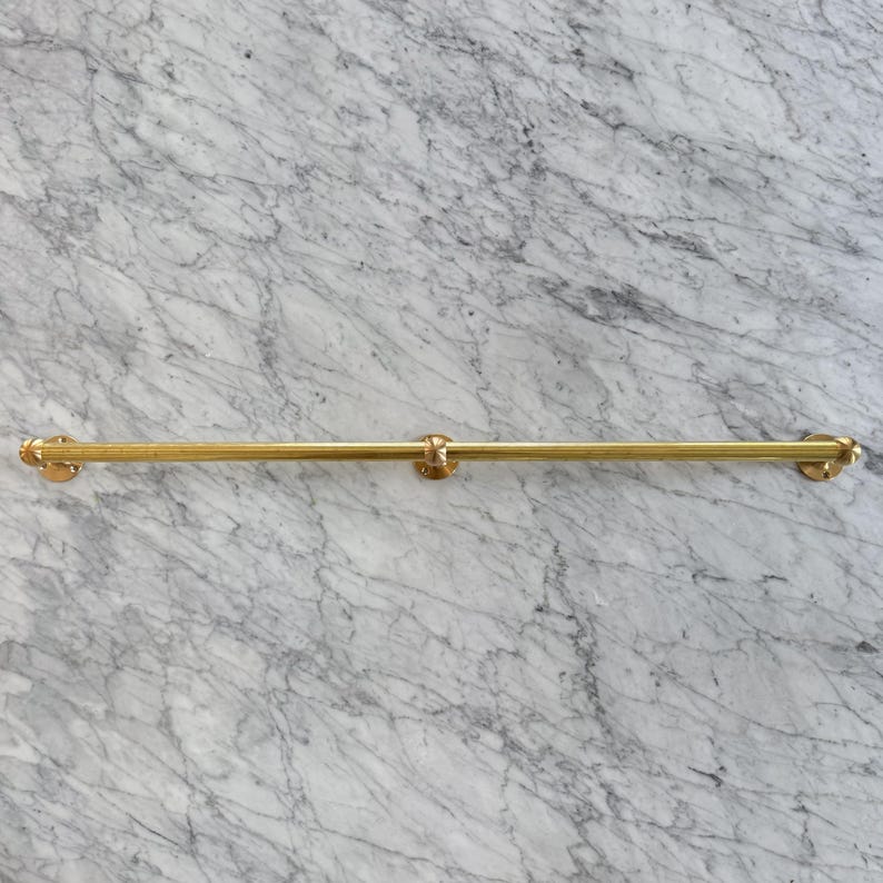 Unlacquered Brushed Brass Pot and Pan Rail with Hooks