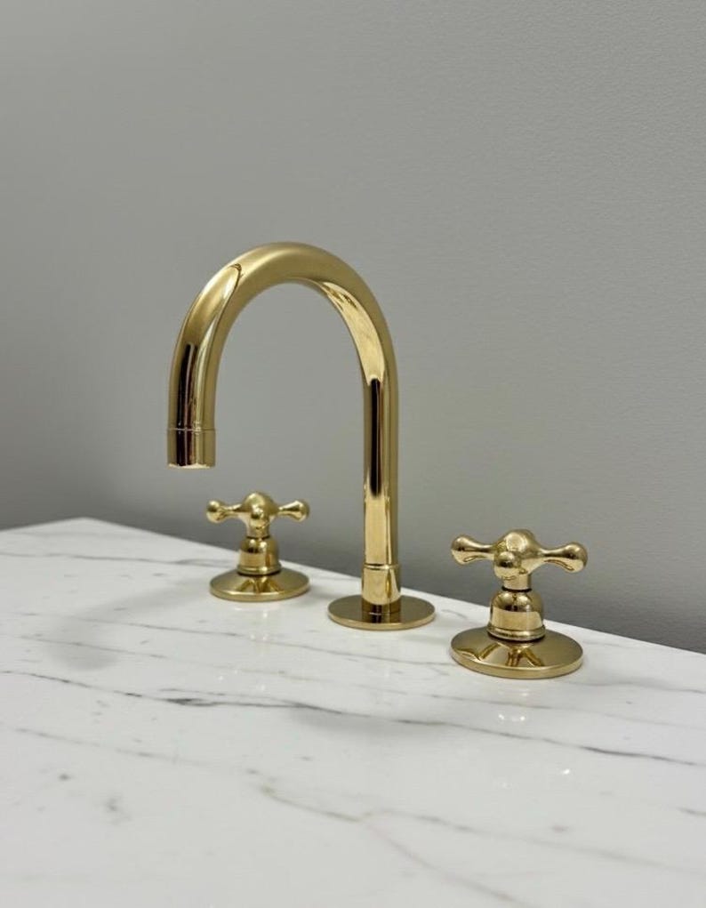Unlacquered Solid Brass Bathroom Faucet, 3-Hole Deck Mount