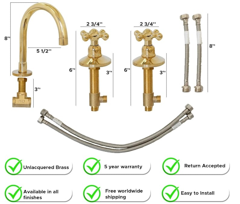 Upgrade your bathroom with this unlacquered brass faucet, designed to age beautifully over time. Made from solid brass, it offers durability and a timeless vintage touch.