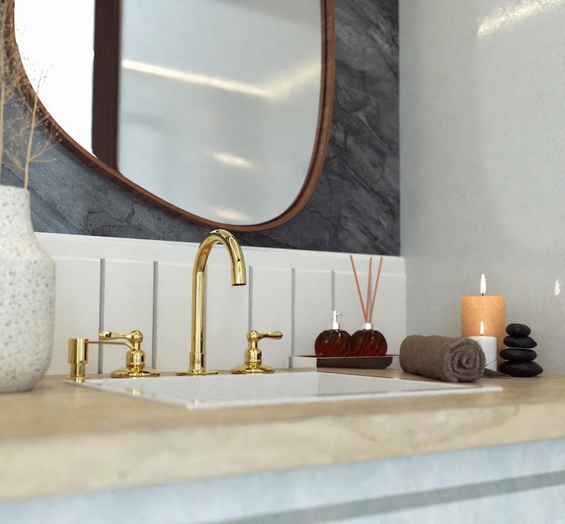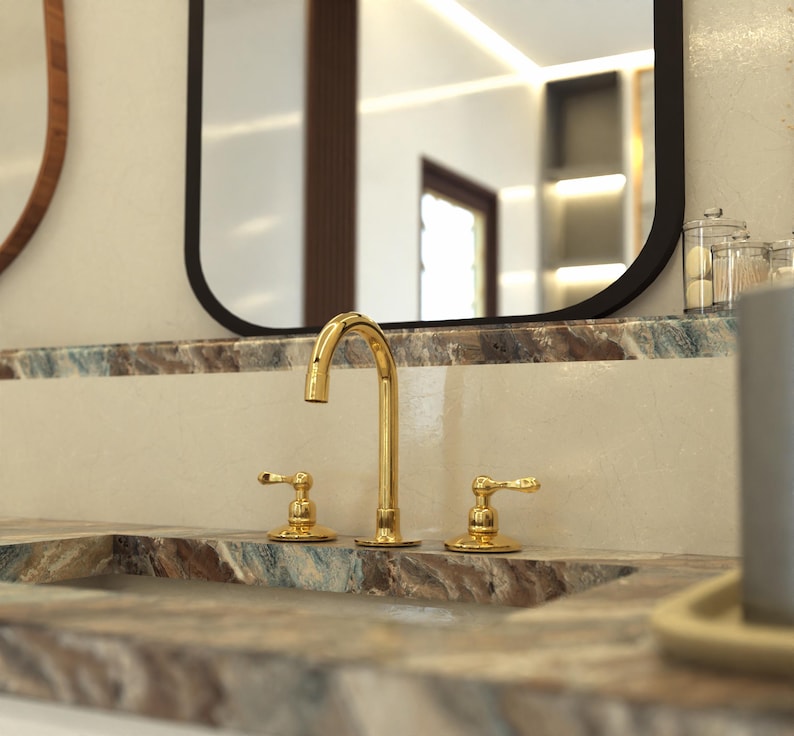 Unlacquered Solid Brass Bathroom Faucet, 3-Hole Deck Mount, Vintage Style