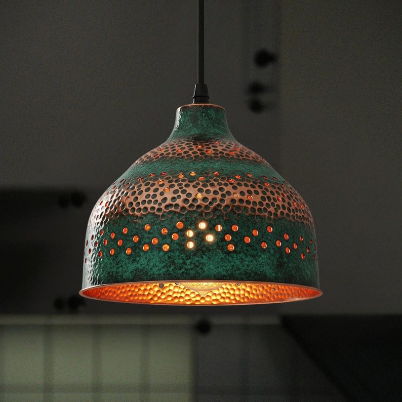 Verdigris Copper Dome Pendant Light: Rustic Farmhouse Chandelier
