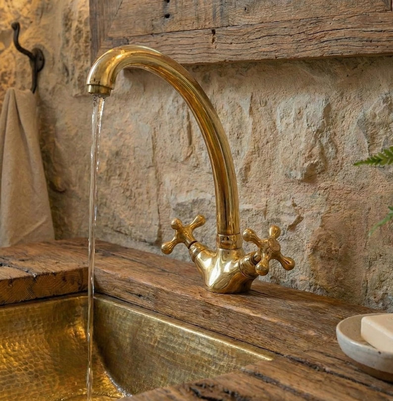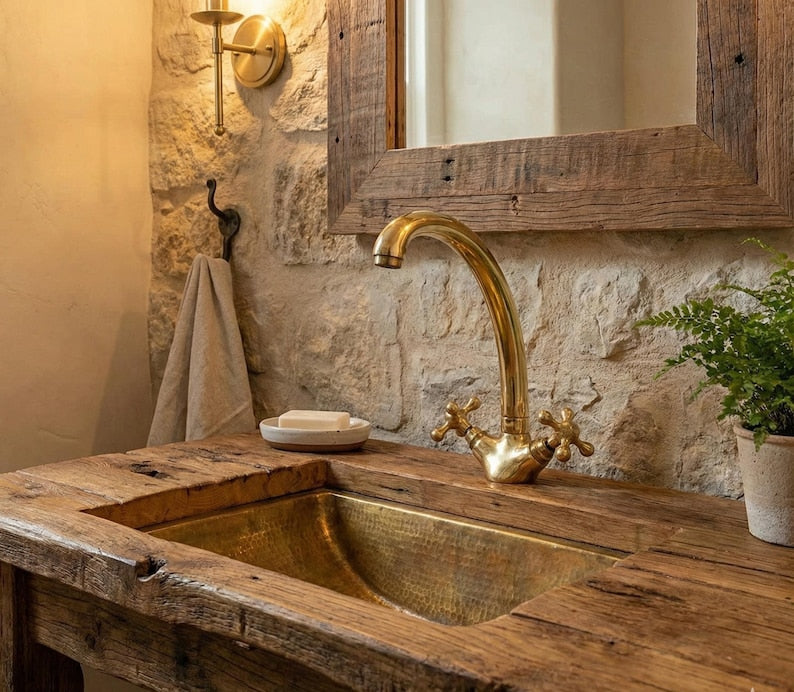 Transform your bathroom or kitchen with this beautifully handcrafted vintage brass faucet, designed for rustic, farmhouse, Mediterranean, and Moroccan-inspired interiors.