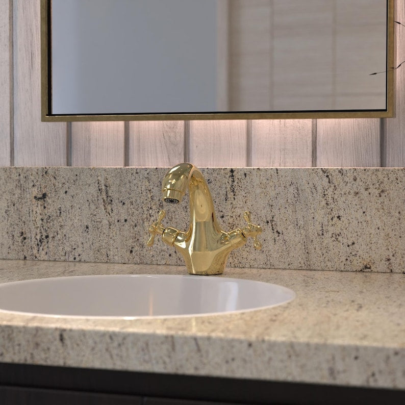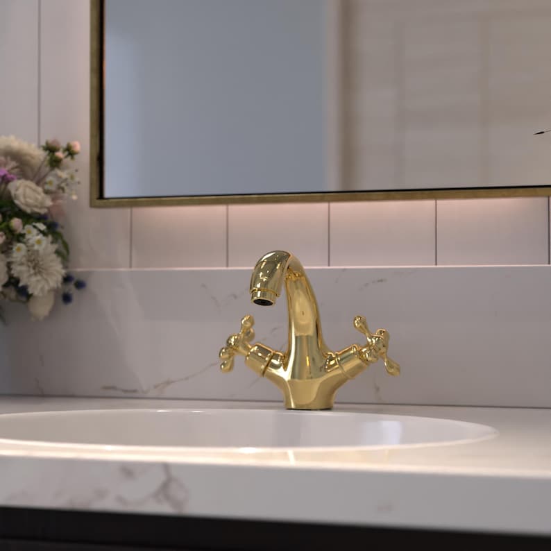 Bring timeless elegance to your bathroom with this handcrafted solid unlacquered brass faucet, featuring a classic single-hole deck mount design and dual cross handles for precise control of temperature and water flow. The living unlacquered brass finish naturally develops a warm patina over time, adding authentic vintage charm to any space.