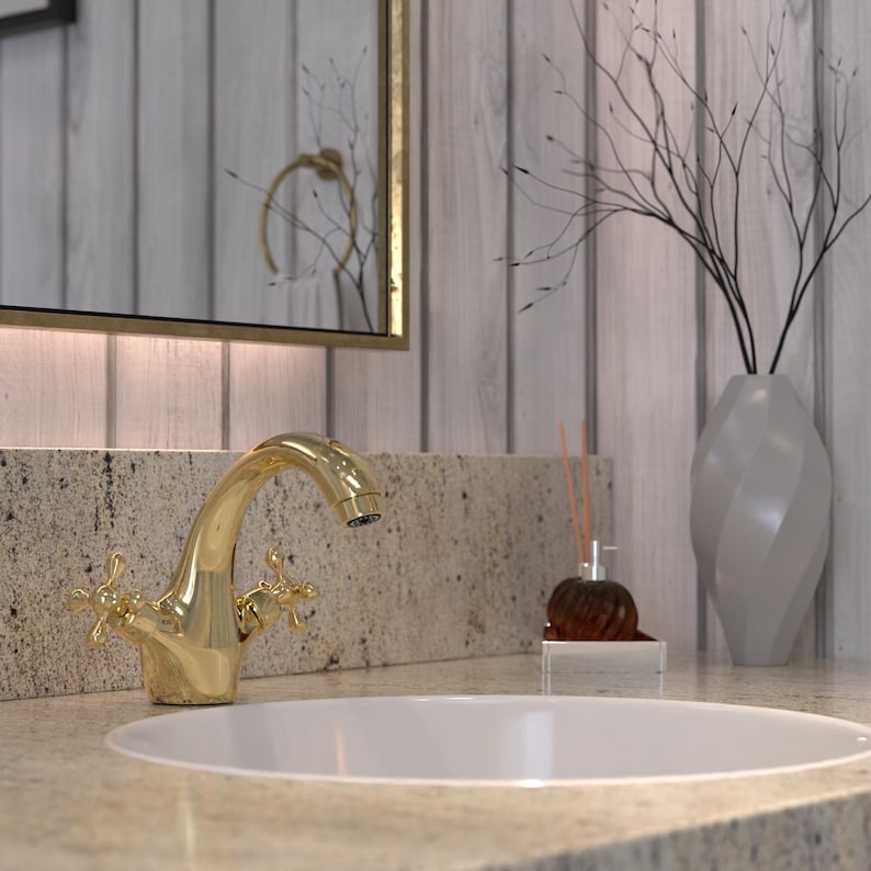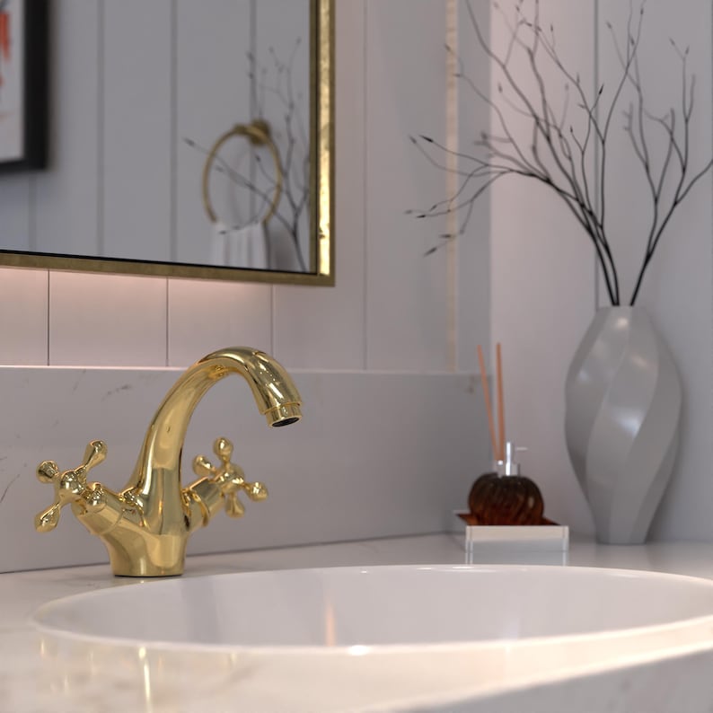 Bring timeless elegance to your bathroom with this handcrafted solid unlacquered brass faucet, featuring a classic single-hole deck mount design and dual cross handles for precise control of temperature and water flow. The living unlacquered brass finish naturally develops a warm patina over time, adding authentic vintage charm to any space.