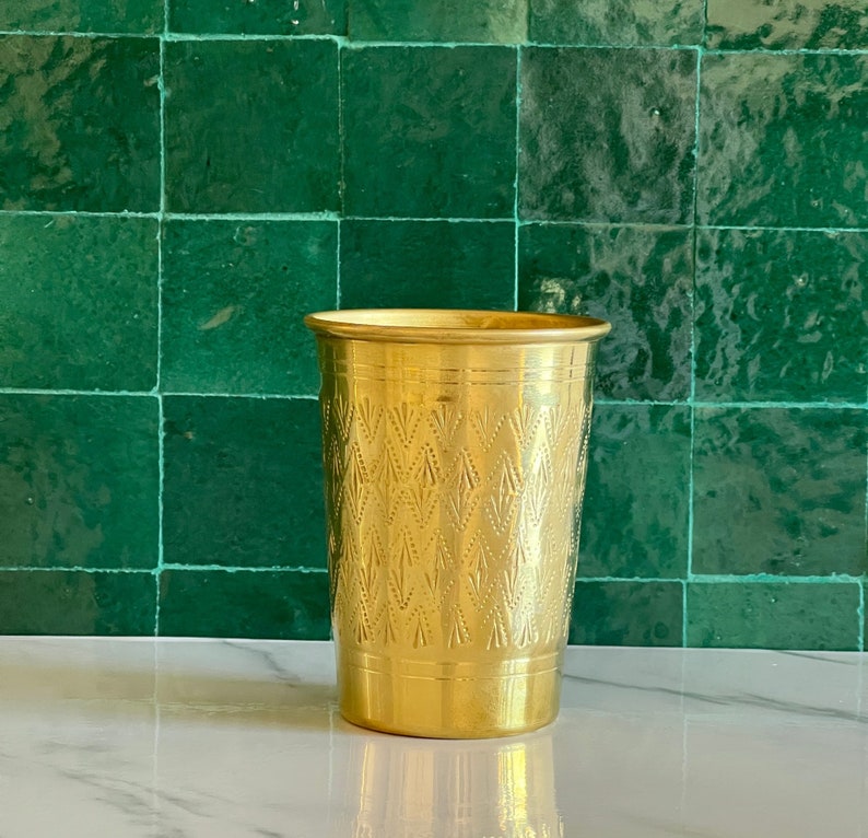 The unlacquered brass finish of this brass tumbler will age gracefully, developing a rich patina that enhances its beauty and character.