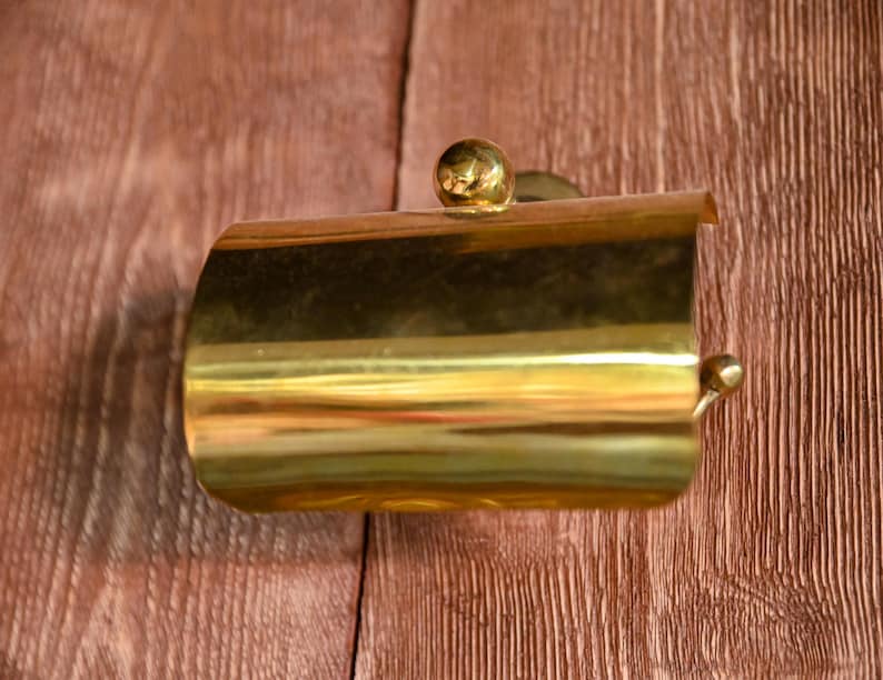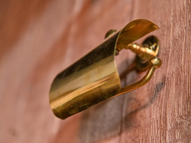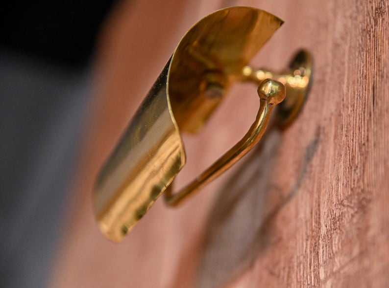 Elevate your bathroom with this wall-mounted toilet paper holder, expertly crafted from solid unlacquered brass. Its warm gold tone adds understated elegance, while the natural patina that develops over time makes each piece truly unique.